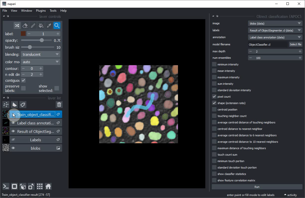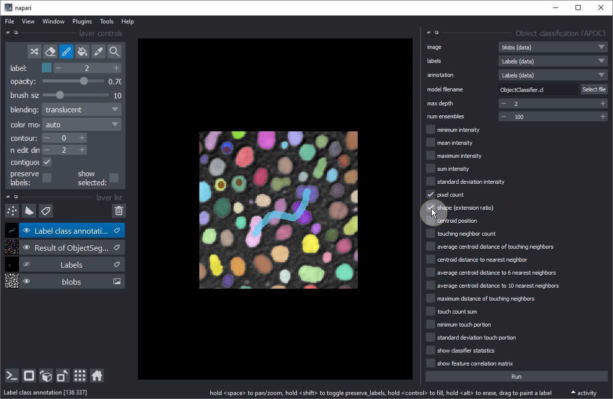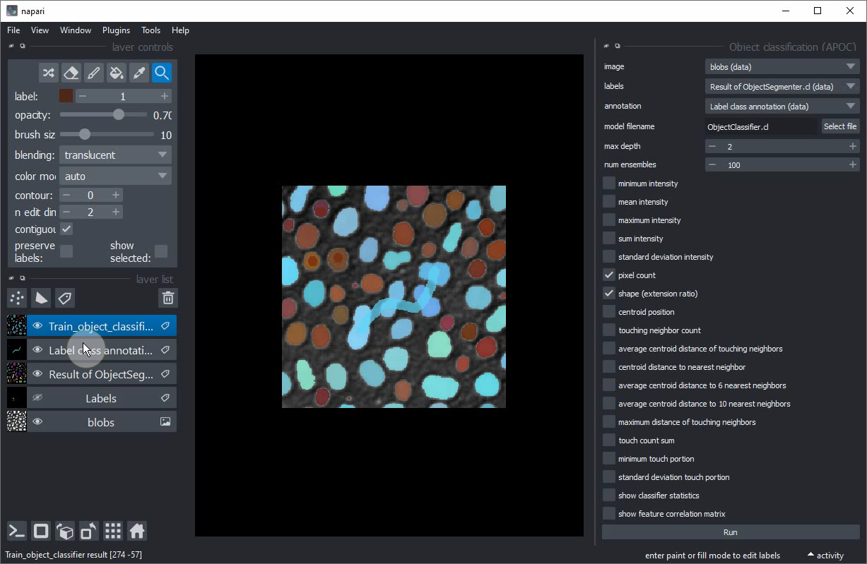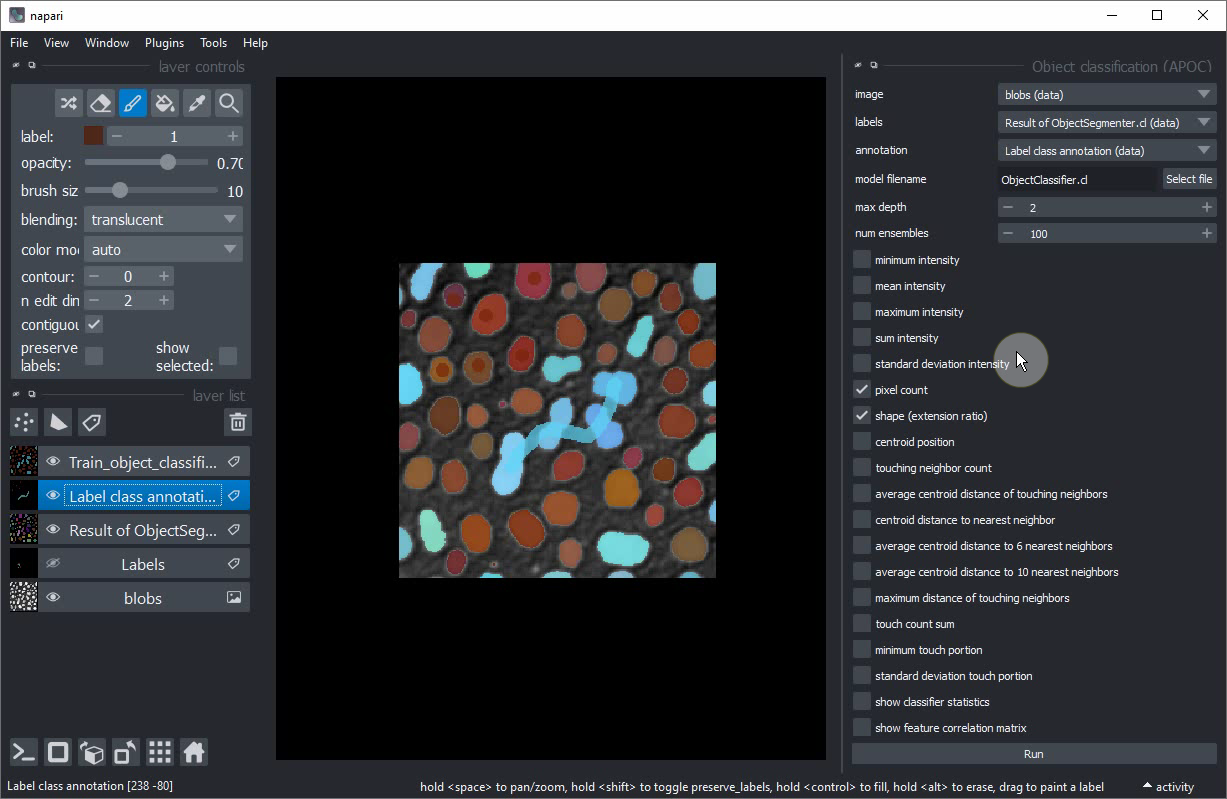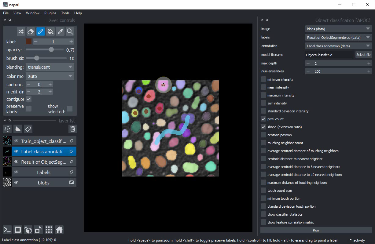 Classification interactive d’objets dans Napari#
