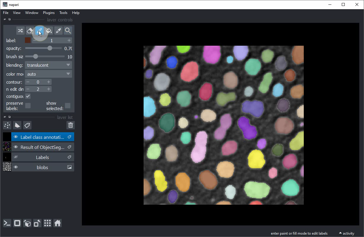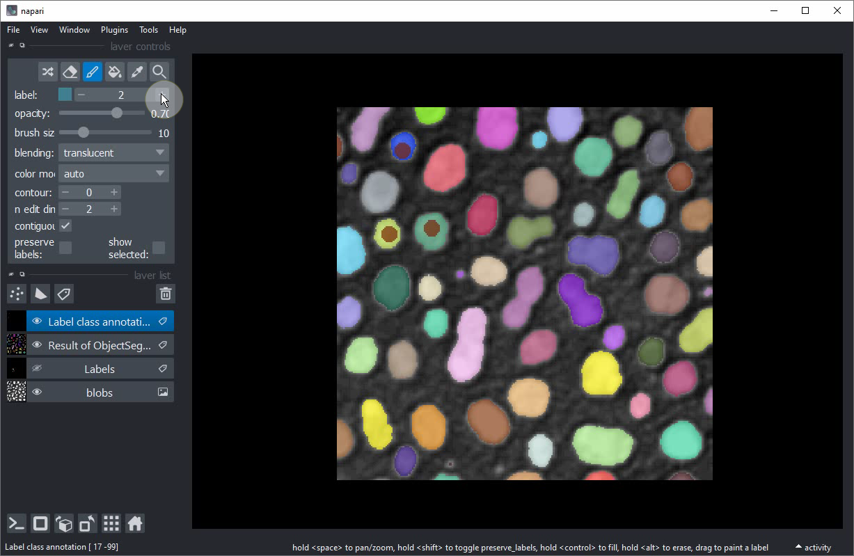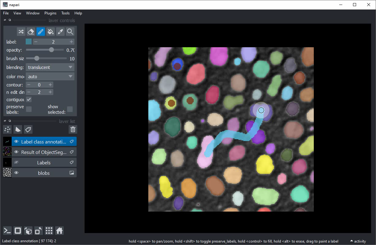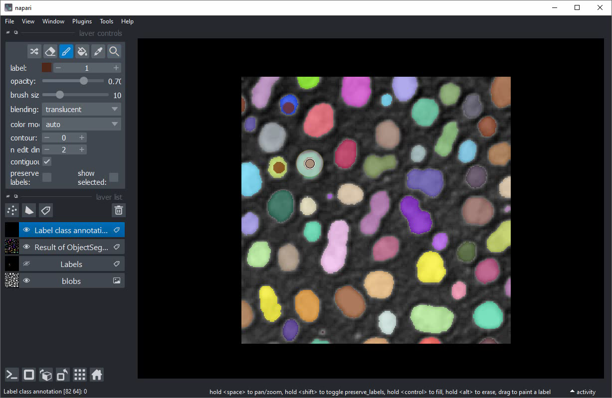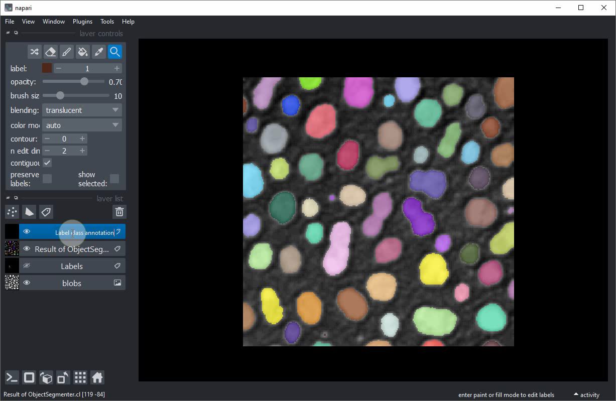 Classification interactive d’objets dans Napari#